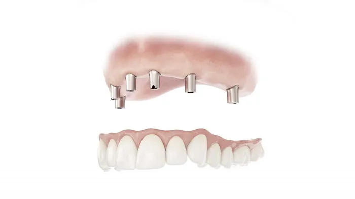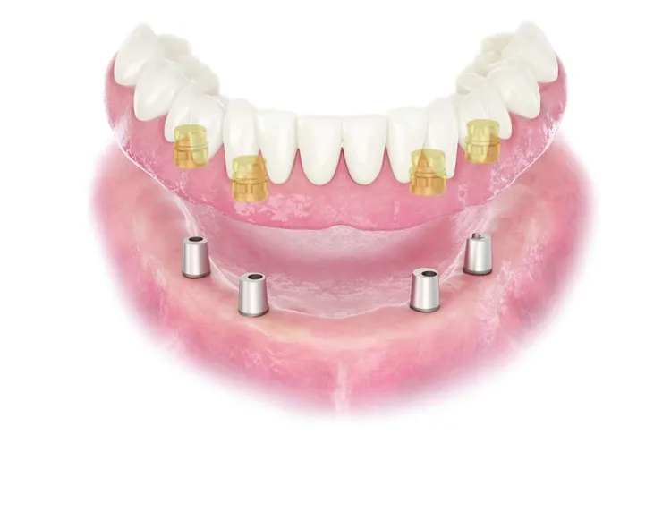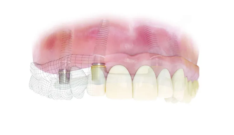 The Denture: with incorporating, the denture can be designed without a palate or flanges. A multitude of material options to increase strength and esthetics can be used.