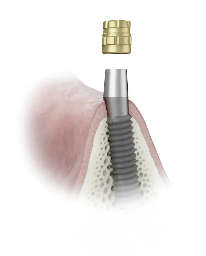 The Connection: the attachment between the implant and the denture. There are many options which allow for “fixed” (the denture cannot be removed by the patient) or removable.